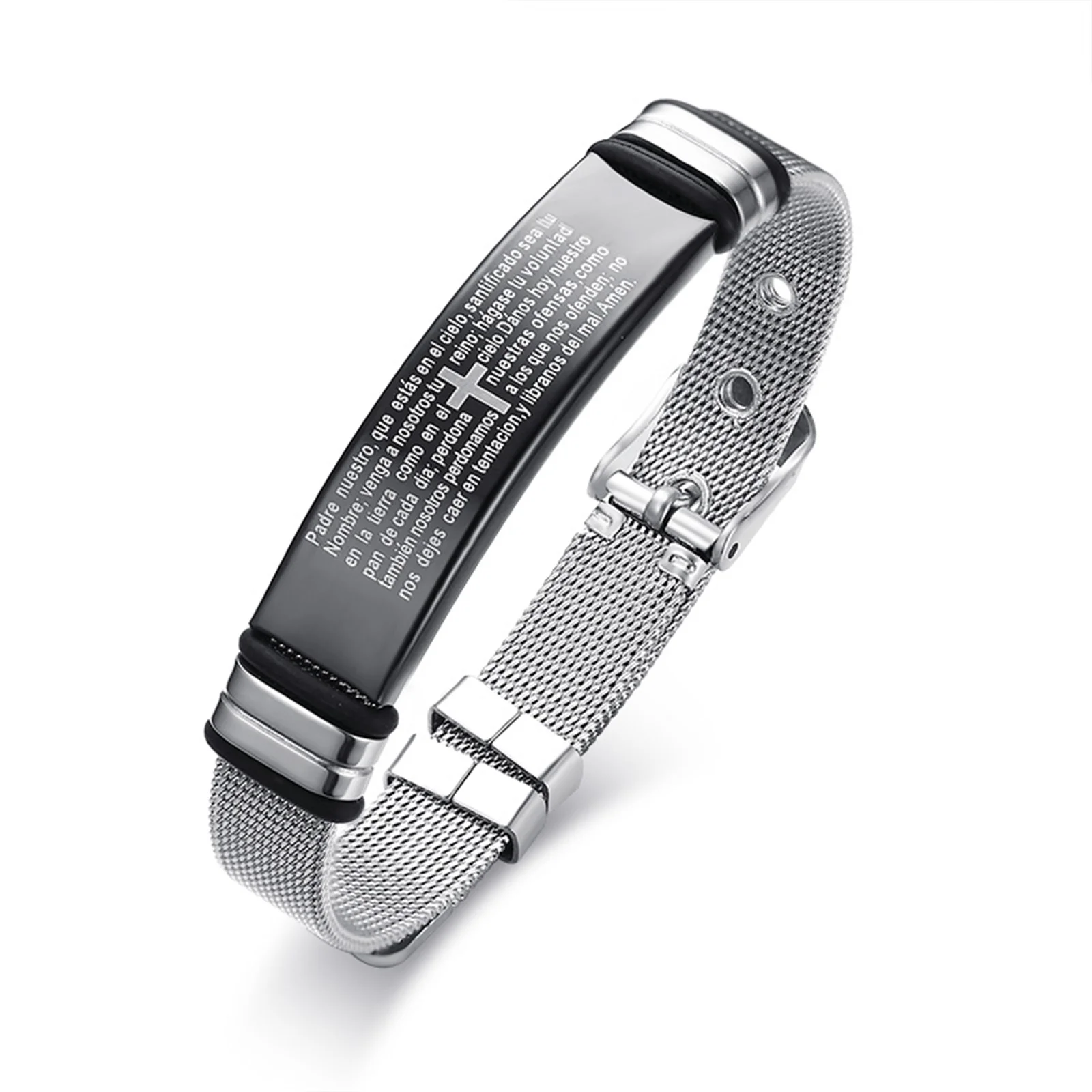 This faith bracelet with Bible verses on them is a powerful symbol to encourage you in your faith. Engraved with the word of God, reads “Our Father who art in heaven, hallowed be thy name. Thy kingdom come. Thy will be done, on earth as it is in heaven. Give us this day our daily bread and forgive us our trespasses, as we forgive those who trespass against us and lead us not into temptation, but deliver us from evil. Amen,” Matthew 6:9-13, you will be able to spread the faith around you and make others discover the Christian religion thanks to a meaningful message that testifies to your encounter with God, which is an ideal Christian gift for men. A Stainless steel adjustable Christmas bracelet on your wrist is comfortable for everywhere you go.