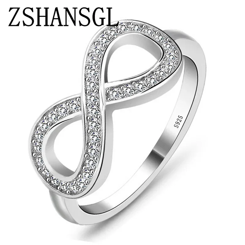 Fashion Cz Infinity Endless Love Claddagh 8 Shape 925 Sterling Silver Rings for Women Silver Filled Jewelry Anel Feminino