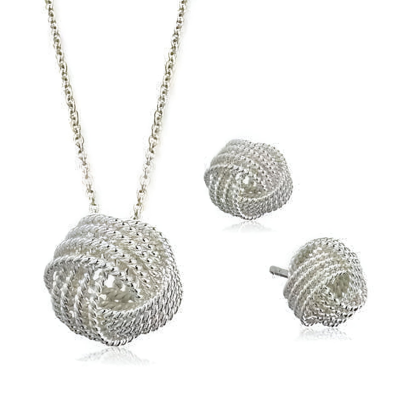 Show your everlasting love! This beautiful gift set features a bold silver mesh love knot necklace with matching stud earrings. Wear them together or separate for a wide variety of looks. A great gift idea for your mom, daughter, sister, wife, girlfriend, or friends! A modern twist to the classic love knot that she will surely love and wear again and again.