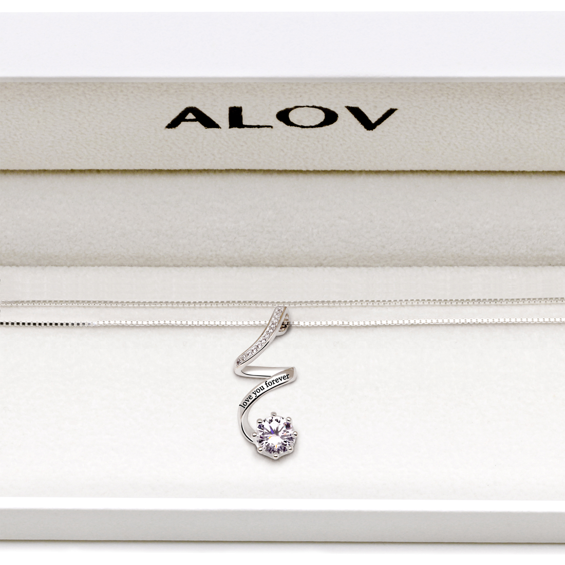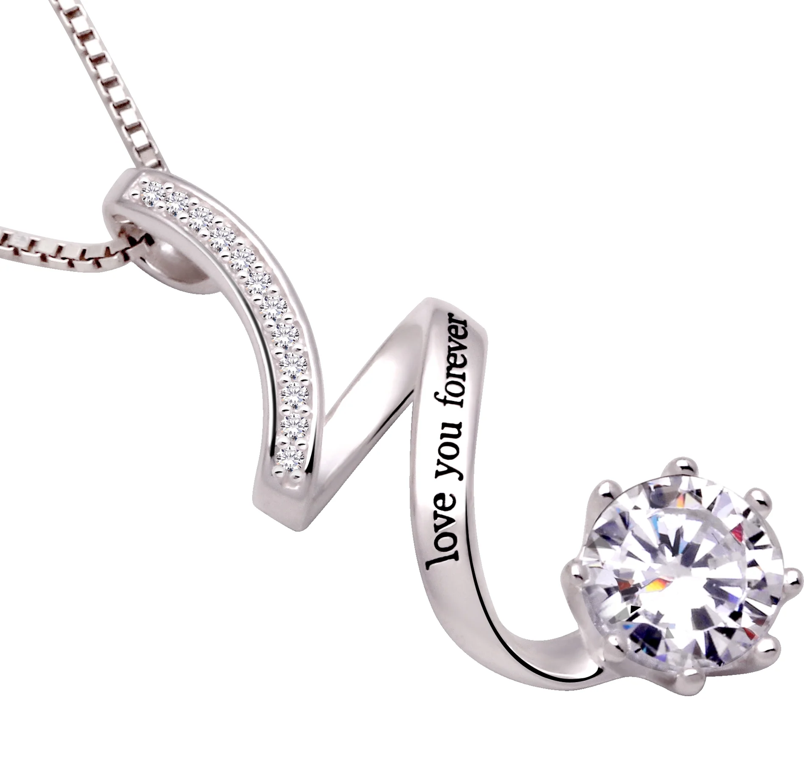 ALOV Jewelry Sterling Silver “love you forever” Cubic Zirconia Pendant Necklace