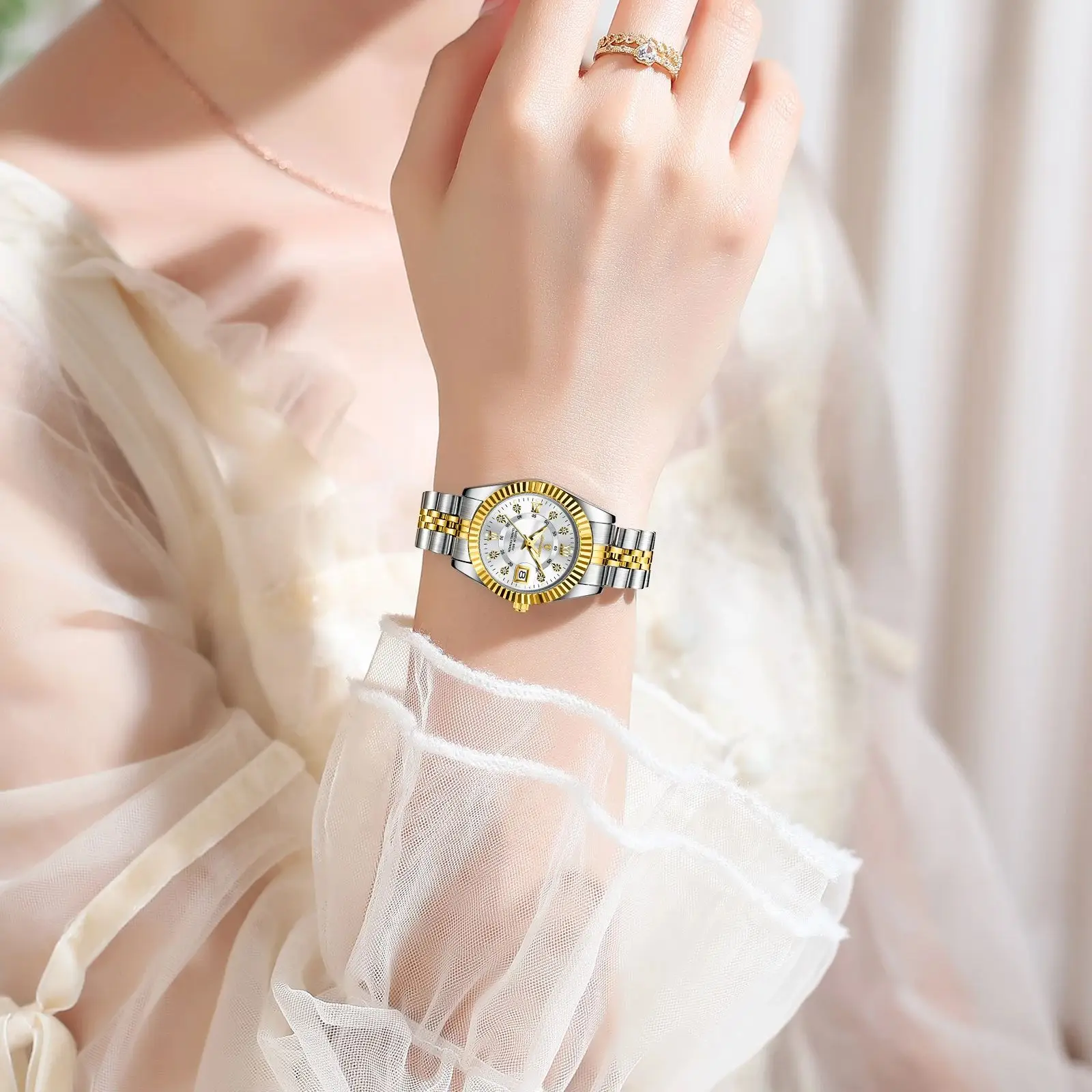 Luxury Elegant Watch for Women Waterproof Luminous Date Ladies Watch Stainless Steel Quartz Women’S Watches Girl Reloj